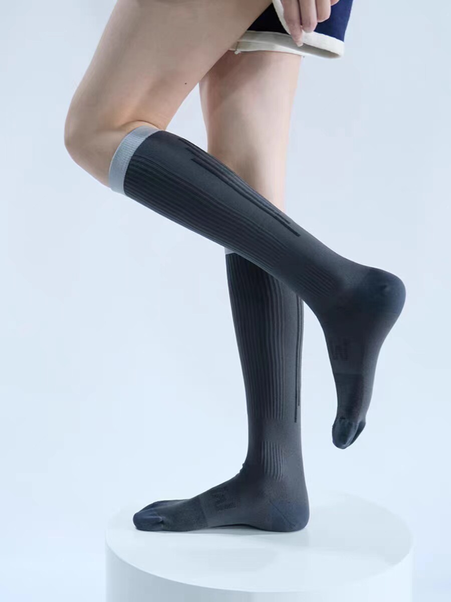 Split-toe mid-calf socks designed for women practicing yoga, pilates, or barre. Non-slip soles prevent sliding on smooth floors, elastic compression supports muscles, and breathable fibers ensure comfort for long sessions at home or in the studio.